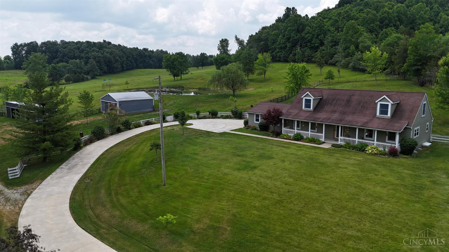 Rolling hills of Southern Highland County! 44.942 acre farm w/16 acres mixed tillable & fenced pastures, exercise pens, 28 acres of woodlands & 2 stocked ponds! 2433 sf. cape cod home on full poured wall basement! Great room serves as a family room & dining area, 6 large windows fill the home with natural light! Oak kitchen, SS appliances, recessed lighting, Corian countertops, mosaic tile backsplash, pantry! 3 BR, 2 1/2 BA home, formal living room, home office, master BR suite, tile step-in shower! Glass French doors, oak trim, walk-in closets & more! Covered front porch, covered paver patio will be the gathering place for family & friends! Winding concrete driveway & parking area connects the 2 car attached garage! 14x60 machinery barn, 30x40 livestock barn w/electric, stalls, hayloft set up for livestock! Flowing creek, park-like setting along the water's edge! This farm offers a perfect blend of all amenities & natural resources you need to enjoy country living at its finest!