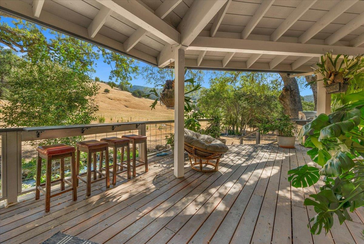 5 acre ranch, 3 bed 2 bath, architectural gem, new HVAC, Solar (paid), entry gates with key pads, new circular concrete driveway, concrete pathways surround home. Brand new, 1500 gal septic system. Own artesian well with new pump, all new electrical. Solar water heater (paid). Large redwood wrap around porch. 6-seat Jacuzzi off the primary bedroom. Fruit orchard (auto drip) and small vineyard. Multiple ponds attract wildlife. Two-story barn with brand new electrical and 220v for workshop, office, or ADU. Two-year old roof on house and barn. Home brush-painted last fall. Soaring 30-foot ceilings, large double pane windows, and 7 skylights fill the home with soft natural light, highlighting the luxury finishes throughout. Tucked away for maximum privacy, this is luxury living at its finest. Sale includes John Deere Gator diesel tractor and new remote-control lawn/bush mower, and various ranch equipment. See attached list of extensive upgrades. Luxury living and move-in ready!