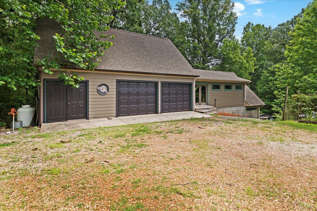Spacious Light Filled Home on 23 acres with Detached 3 story 4,000+ sq ft Workshop. Car collector, Artist or Hobbyist-name your passion-you will love this space. So many options here. A long winding driveway leads you to the sprawling home which has been transformed by the creative artist/owners over the years. You will find spacious living areas, 3-4 bedrooms and 3 1/2 baths including a well planned primary suite on the main level. The terrace level with another full bath is a flexible space currently used as a studio which could be converted into an apartment. Outdoor living has not been neglected with a screened porch, deck and patio overlooking a tranquil koi pond all inviting relaxation. A barn, greenhouse, small tool shed, an established garden, an imaginative playhouse nestled in the woods and a picturesque creek complete this property. Whether you want a multi generational homestead, a creative retreat or a prime vacation home this unique sanctuary awaits.