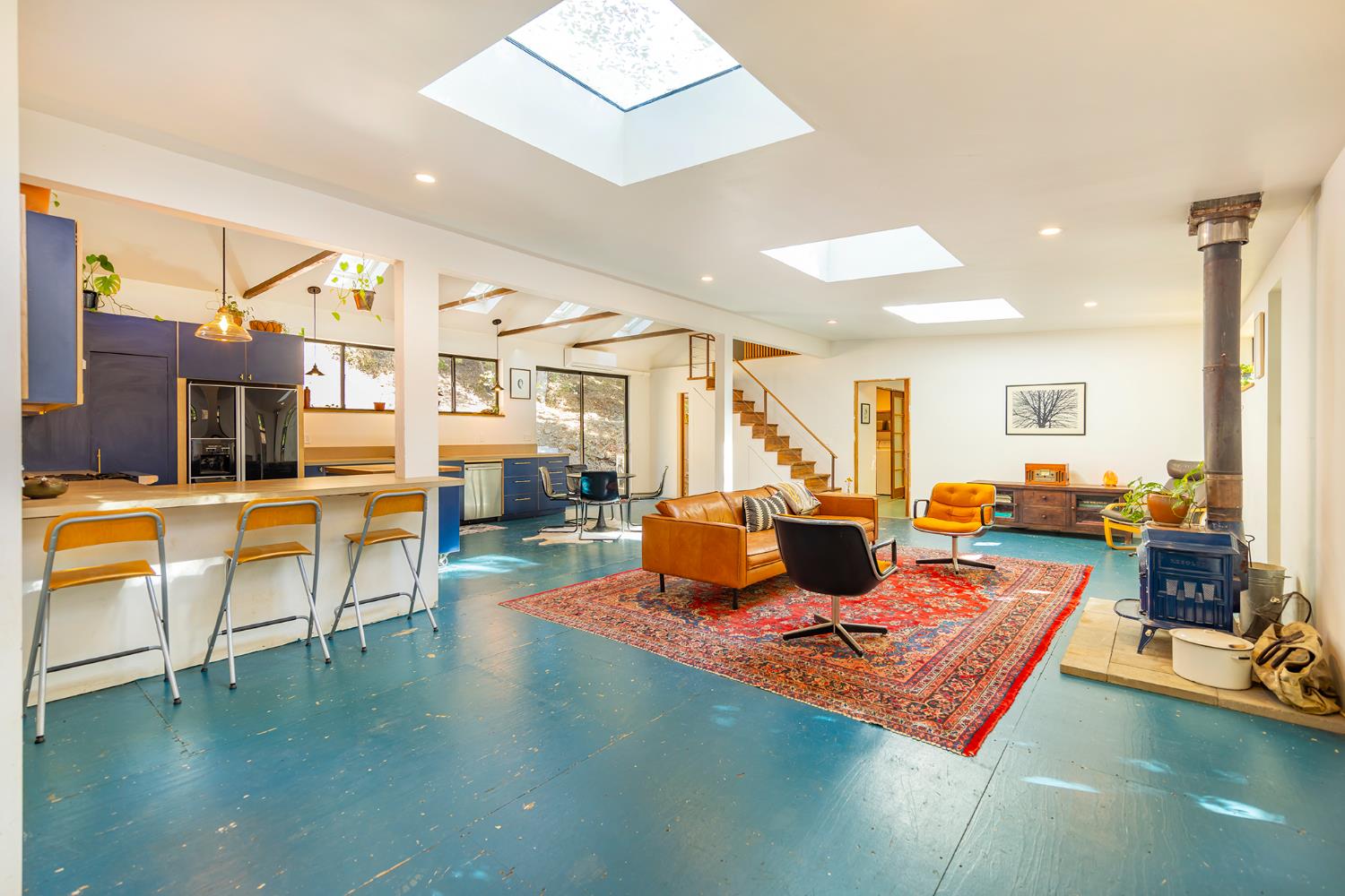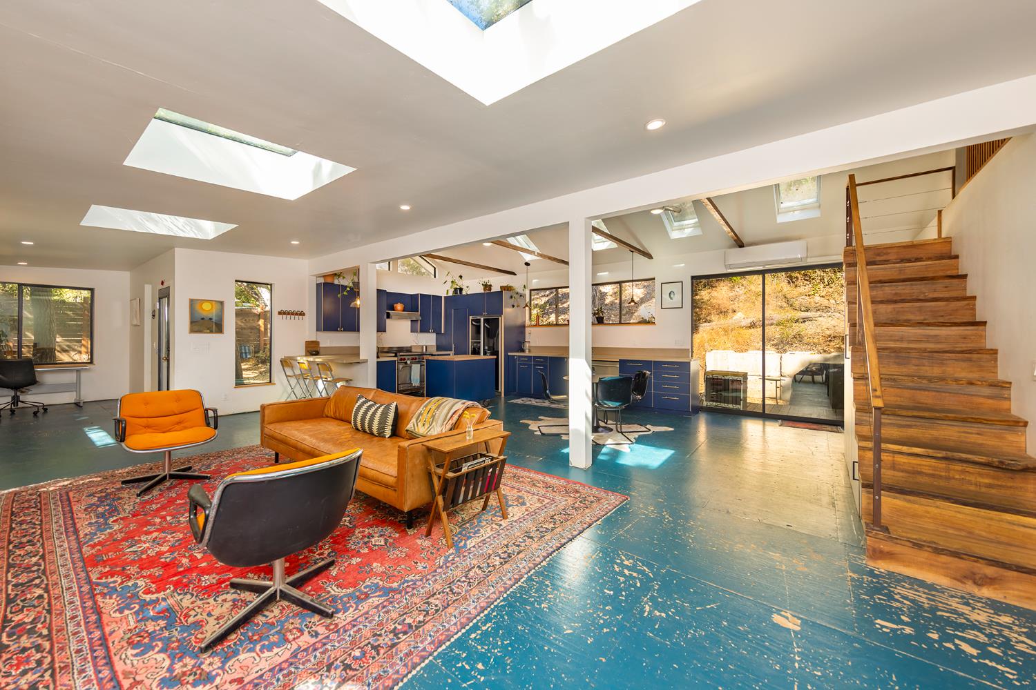 Tucked away underneath a canopy of oak trees awaits this modern cabin. Just 15 minutes from downtown Ojai. Modern Mountain Cabin retreat in the scenic and wild natural beauty of the Matilija Canyon, this area is preserved in time with towering old growth trees and free flowing year round creek with natural hot mineral springs. Surrounded by national forest with miles of hiking, biking, or backpacking trails. Home was recently extensively remodeled with high vaulted ceilings and skylights that flood the home with natural light. A spacious open concept living area with large Bedroom, sleeping loft and additional detached studio space. A private Fresh water well services the approx. 2 acre property. Plenty of usable land for gardens,40' shipping container with roll up door and outdoor workspace area at west end of property for storage etc. This property offers privacy and security with fencing and is ideal for weekend getaways or full time residency.