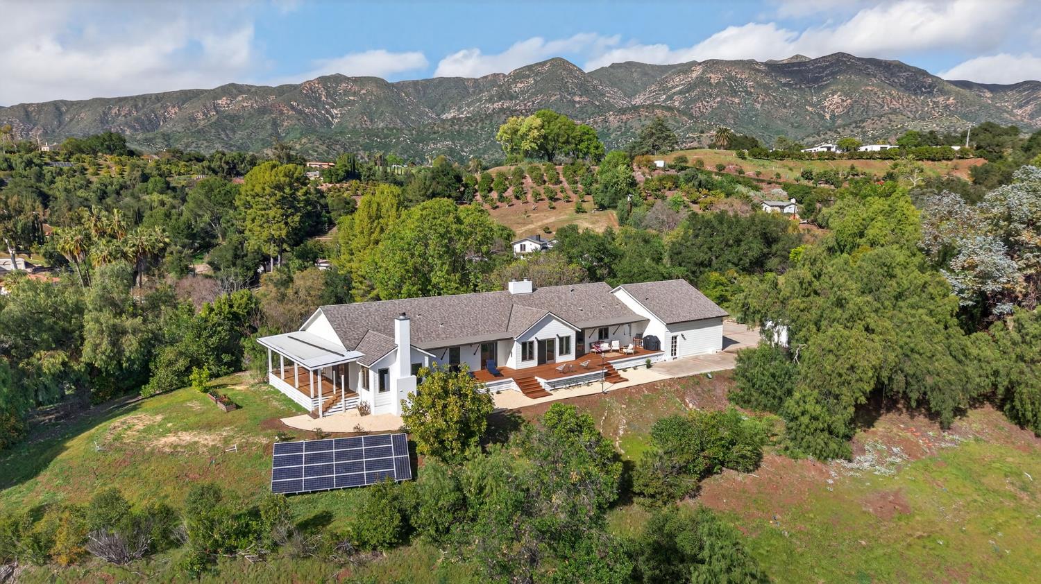 Beautifully updated and thoughtfully designed, this single-level home is set on approximately 2.5 acres in the Ojai Valley, offering panoramic west- and north-facing views along with exceptional privacy and tranquility.