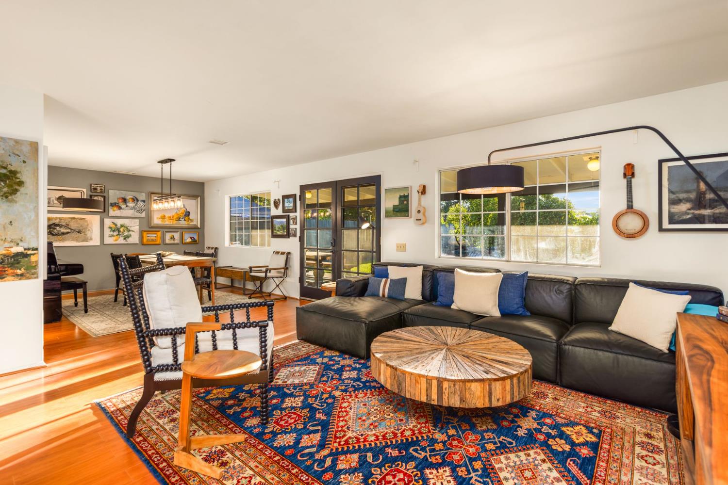 Lovely three-bedroom, two-bathroom home located in the heart of downtown Ojai. Beautifully updated, the property features an open-concept living and dining area that extends through French doors to a covered patioperfect for al fresco dining and shaded outdoor living. Expansive grassy yards provide ample space for entertaining, play, or peaceful retreat.