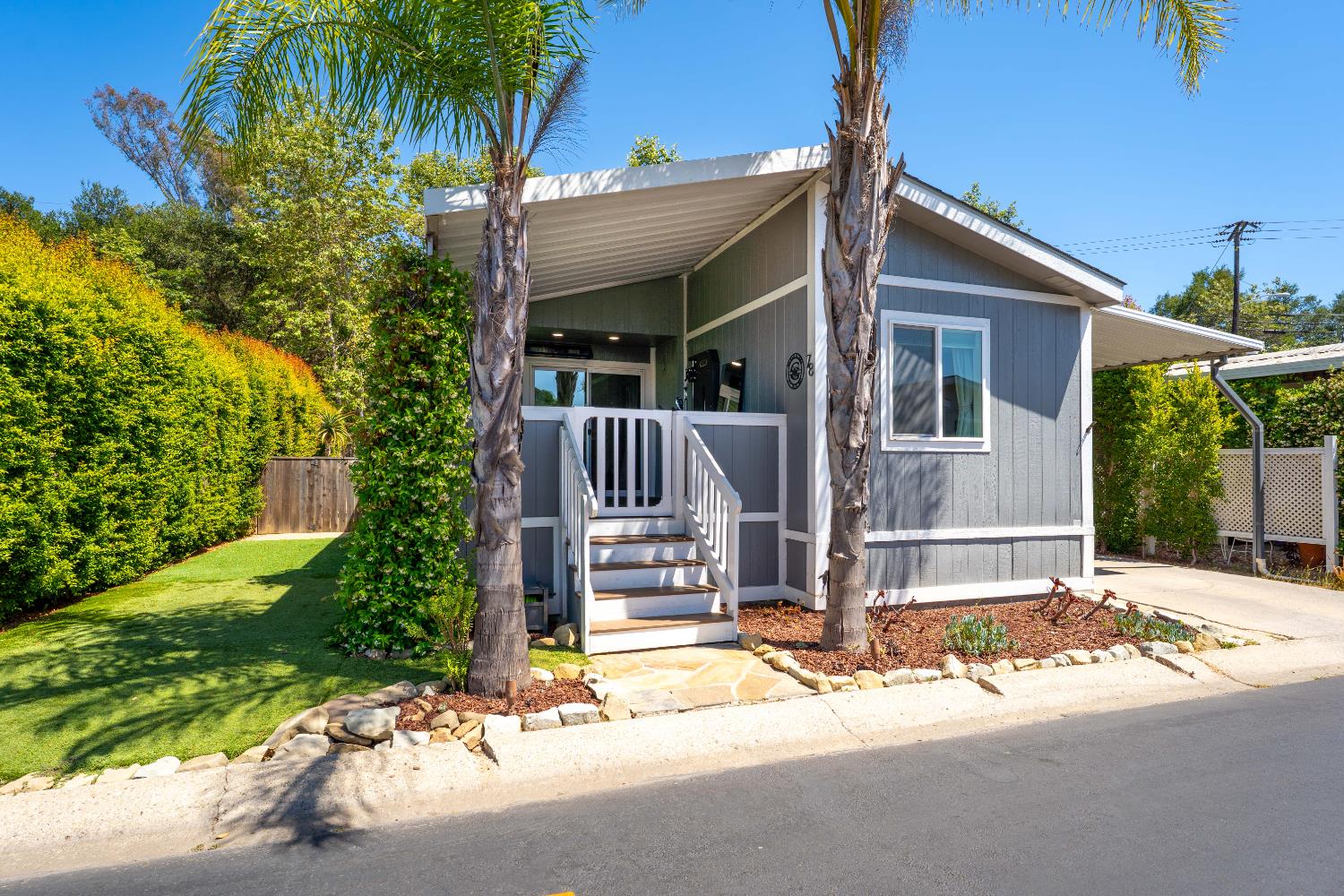 Welcome to Ojai Oaks, an all-age community offering wonderful amenities including a sparkling pool, clubhouse and game room. This beautifully maintained 2-bedroom, 2-bathroom manufactured home has been thoughtfully updated throughout. Inside, you'll find a modernized kitchen with butcher block counters, newer appliances, and wood-like flooring. The open layout is bright and inviting filled with natural sunlight. Dual-paned windows and central A/C keep this home cool in the summertime, for year-round comfort! Enjoy a spacious backyard, boasting a covered back patio complete with slate floors, pull down shades, ceiling fans, low-maintenance synthetic grass, and mature landscaping creating a true retreat! The property also includes a long carport, large lofted shed for storage and a fenced pet area. The front porch is currently used as a home gym, but could easily be reimagined as another outdoor living space to lounge, enjoy a cup of coffee in the morning or enclosed and made into a third bedroom. Located less than 4 miles to downtown Ojai and just 12 miles to Ventura Pier and downtown Ventura. Don't miss the chance to live in this welcoming community with fantastic amenitiesschedule a showing today!