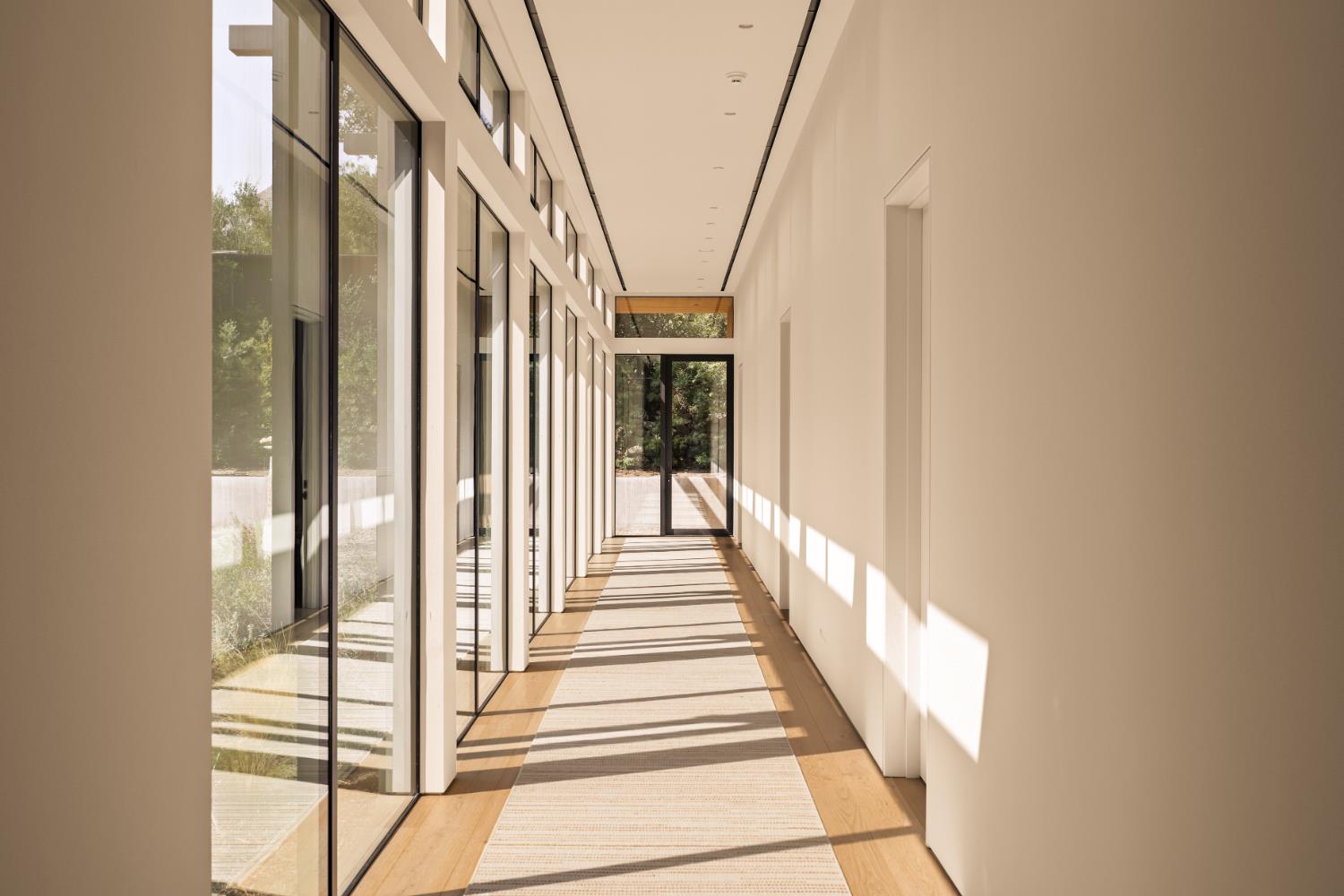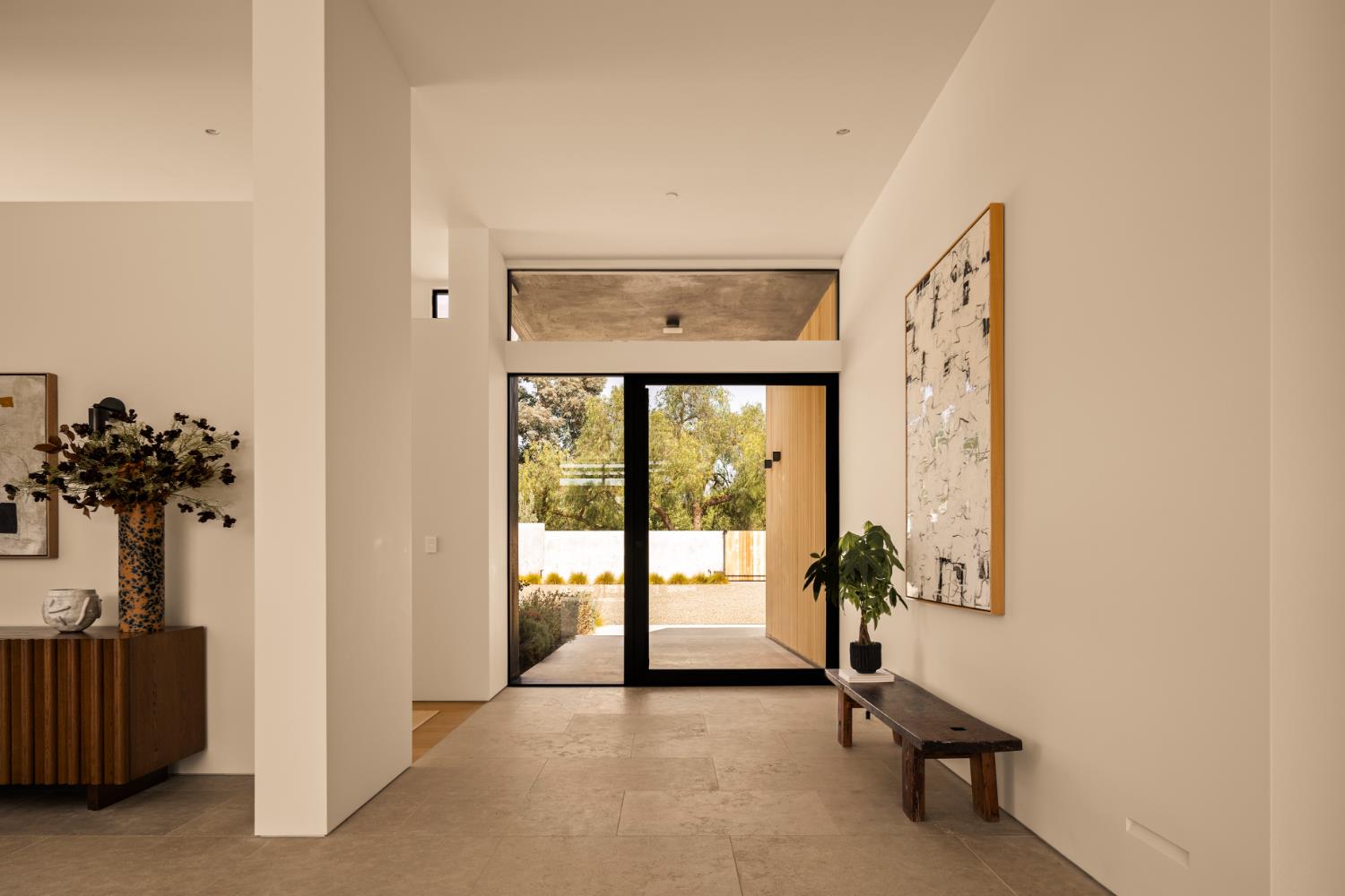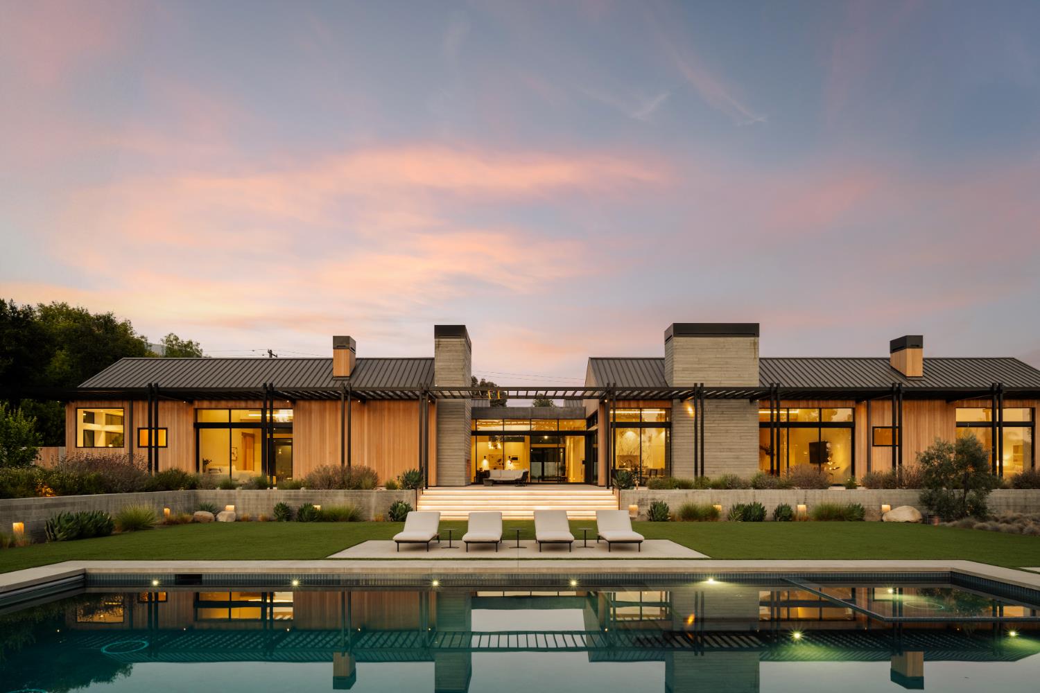 Sited on over 2.2 flat acres in prime Ojai Valley, The Shippee Estate is a rare opportunity to own a newly constructed architectural farmhouse compound featuring the highest level of finish and design in a uniquely serene setting. A product of 4 years of meticulous design and building by one of the country's most prolific builders, the estate features single-story living throughout its Main Residence, Guesthouses, Cabanas, and Workshops. This private retreat features 12-20ft ceilings, walls of glass, and grand scale, perfect for entertaining, hosting, and living on all scales. The grand entry features a 12ft pivot door guiding you into an open-concept living space, with soaring ceilings and walls of glass that frame the surrounding landscape and zen-inspired courtyard featuring olive trees and native landscaping. Natural light floods the interiors, creating a seamless transition from the large public spaces to the grounds and outdoor spaces beyond. Premium materials and finishes are showcased throughout, including wide-plank white oak flooring, sandblasted limestone, imported Calacatta marble, and a chef's kitchen outfitted with professional-grade Miele, Wolf and Subzero appliances. The exterior is clad in warm cedar siding, enhancing the home's architectural character and blending seamlessly with the natural surroundings. Lighting and fixtures sourced from renowned designers Apparatus and Rejuvenation further elevate the home's modern elegance. Every element reflects a commitment to quality and craftsmanship, resulting in a residence that is both timeless and enduring. Interior features of the Main Residence include a resort-style primary suite, boutique-inspired walk-in closet, and spa-like bathroom with an additional private outdoor shower and garden. A secondary primary suite features soaring ceilings, cozy fireplace, and a sublime bathroom with soaking tub and rainfall shower. Guest bedroom suites are complete with custom millwork, en-suite bathrooms, and serve as the perfect retreat for family and friends. Perfect for generational living or as the quintessential weekend retreat, this is a true compound, featuring a variety of auxiliary structures such as a pool cabana, entertainment pavilion with indoor-outdoor kitchen, guest house, expansive studio space and additional detached garages. Primed for any car enthusiast, the home features finished garage spaces with the height to support lift systems for additional vehicles. Outdoor amenities include various gardens, spacious patios, outdoor kitchen, turfed lawn, a resort-style pool and spa, and landscaped grounds. The property's flat acreage offers versatile potential, while its elevated position ensures year-round views of Ojai's iconic mountain backdrop. Located minutes from downtown Ojai, proximity to hiking trails, renowned dining and boutiques, and The Ojai Valley Inn. A refined retreat offering the ultimate in resort-style living in one of the West Coast's most coveted destinations.