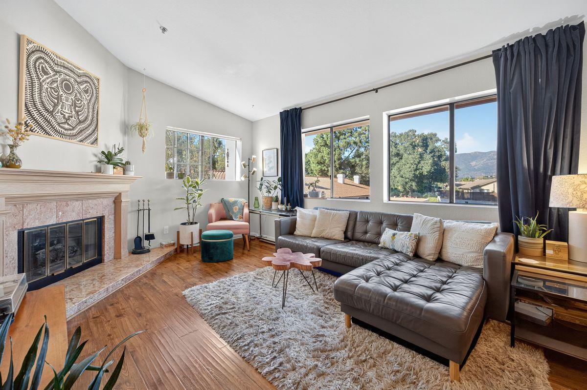 Discover this inviting 2-bedroom, 1.5-bath condominium in the heart of Mira Monte. Enjoy stunning mountain views through expansive picture windows in the living room, or cozy up by the gas fireplace on cool Ojai evenings. Vaulted ceilings fill the space with natural light and create a warm and open atmosphere throughout this second-floor home. The spacious kitchen is ideal for both home cooking and entertaining, while the rear balcony - accessible from both bedrooms, offers a serene setting for morning coffee, outdoor dining or evening relaxation. Additional features include a private garage, in-unit stackable washer and dryer, and access to community amenities such as a swimming pool and clubhouse, maintained by the HOA. With an Ojai Trolley stop just steps from your door and the scenic bike path nearby, you'll have access to downtown Ojai's charming shops and restaurants, while also being just a short ride or drive to the beaches of Ventura. Well-maintained and move-in ready, this Mira Monte gem combines mountain tranquility with central convenience--a perfect place to call home.