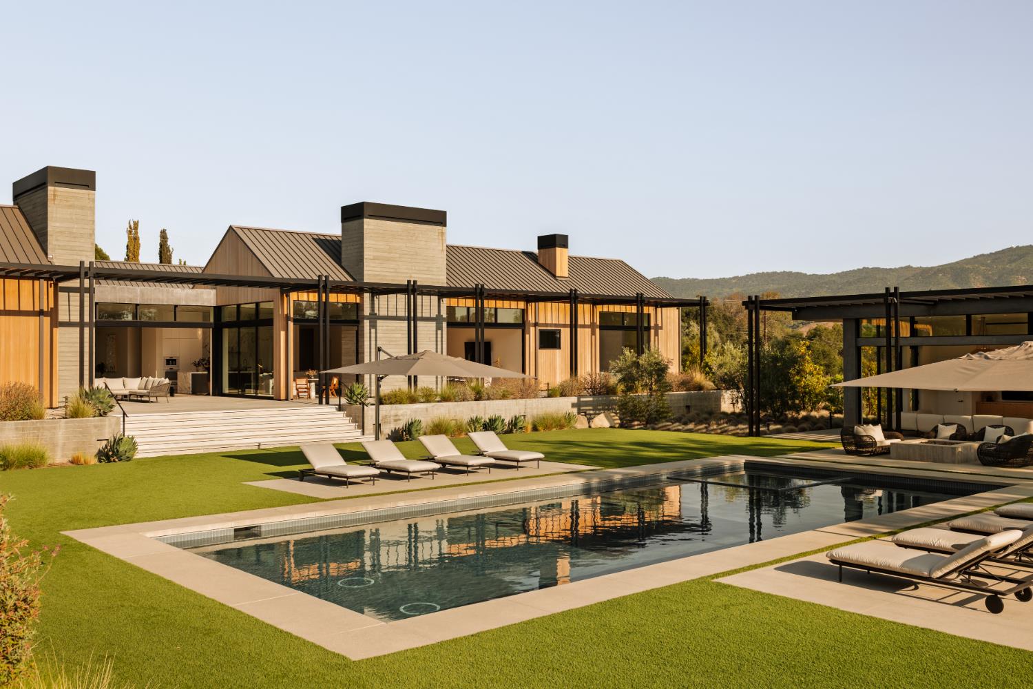 Sited on over 2.2 flat acres in prime Ojai Valley, The Shippee Estate is a rare opportunity to own a newly constructed architectural farmhouse compound featuring the highest level of finish and design in a uniquely serene setting. A product of 4 years of meticulous design and building by one of the country's most prolific builders, the estate features single-story living throughout its Main Residence, Guesthouses, Cabanas, and Workshops. This private retreat features 12-20ft ceilings, walls of glass, and grand scale, perfect for entertaining, hosting, and living on all scales. The grand entry features a 12ft pivot door guiding you into an open-concept living space, with soaring ceilings and walls of glass that frame the surrounding landscape and zen-inspired courtyard featuring olive trees and native landscaping. Natural light floods the interiors, creating a seamless transition from the large public spaces to the grounds and outdoor spaces beyond. Premium materials and finishes are showcased throughout, including wide-plank white oak flooring, sandblasted limestone, imported Calacatta marble, and a chef's kitchen outfitted with professional-grade Miele, Wolf and Subzero appliances. The exterior is clad in warm cedar siding, enhancing the home's architectural character and blending seamlessly with the natural surroundings. Lighting and fixtures sourced from renowned designers Apparatus and Rejuvenation further elevate the home's modern elegance. Every element reflects a commitment to quality and craftsmanship, resulting in a residence that is both timeless and enduring. Interior features of the Main Residence include a resort-style primary suite, boutique-inspired walk-in closet, and spa-like bathroom with an additional private outdoor shower and garden. A secondary primary suite features soaring ceilings, cozy fireplace, and a sublime bathroom with soaking tub and rainfall shower. Guest bedroom suites are complete with custom millwork, en-suite bathrooms, and serve as the perfect retreat for family and friends. Perfect for generational living or as the quintessential weekend retreat, this is a true compound, featuring a variety of auxiliary structures such as a pool cabana, entertainment pavilion with indoor-outdoor kitchen, guest house, expansive studio space and additional detached garages. Primed for any car enthusiast, the home features finished garage spaces with the height to support lift systems for additional vehicles. Outdoor amenities include various gardens, spacious patios, outdoor kitchen, turfed lawn, a resort-style pool and spa, and landscaped grounds. The property's flat acreage offers versatile potential, while its elevated position ensures year-round views of Ojai's iconic mountain backdrop. Located minutes from downtown Ojai, proximity to hiking trails, renowned dining and boutiques, and The Ojai Valley Inn. A refined retreat offering the ultimate in resort-style living in one of the West Coast's most coveted destinations.